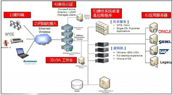 瘦终端是我们使用桌面云的设备,一般是一个内嵌了独立的嵌入式操作系统,可以通过各种协议连接到运行在服务器上的桌面的设备,为了充分利用已有资源,实现 IT 资产的最大化应用,架构中也支持对传统桌面做一些改造,安装一些插件,使得它们也有能力连接到运行在服务器上的桌面。